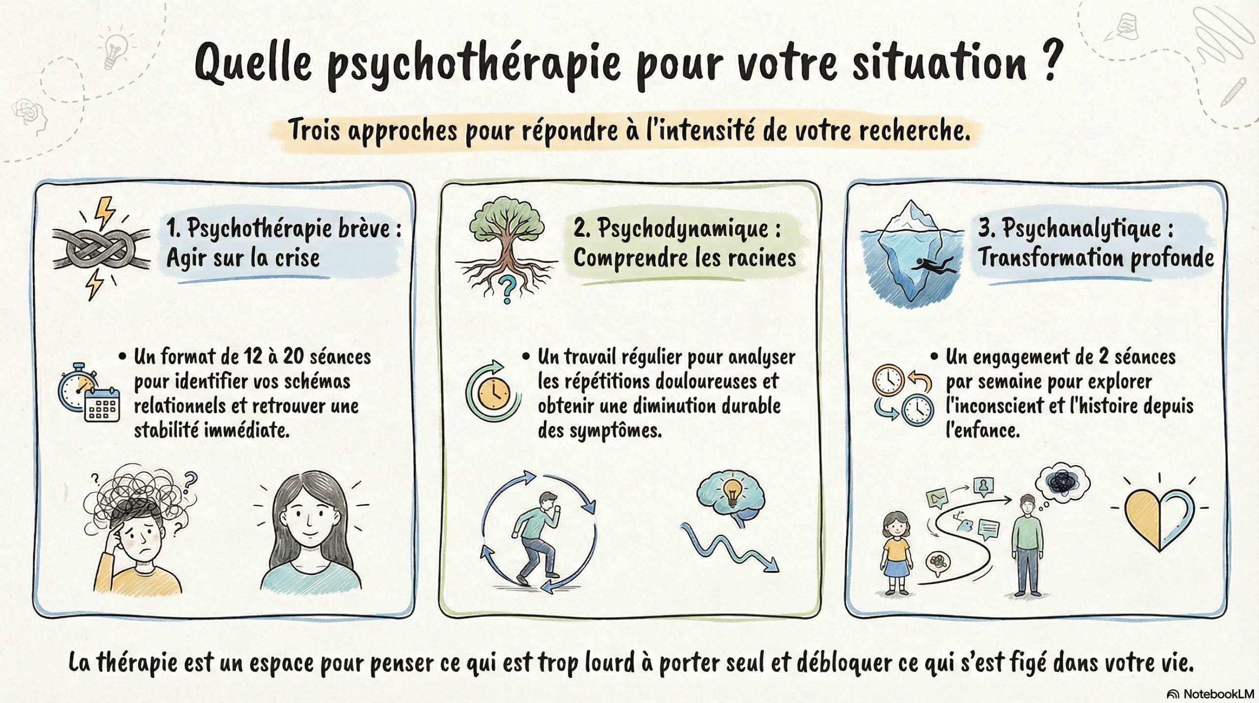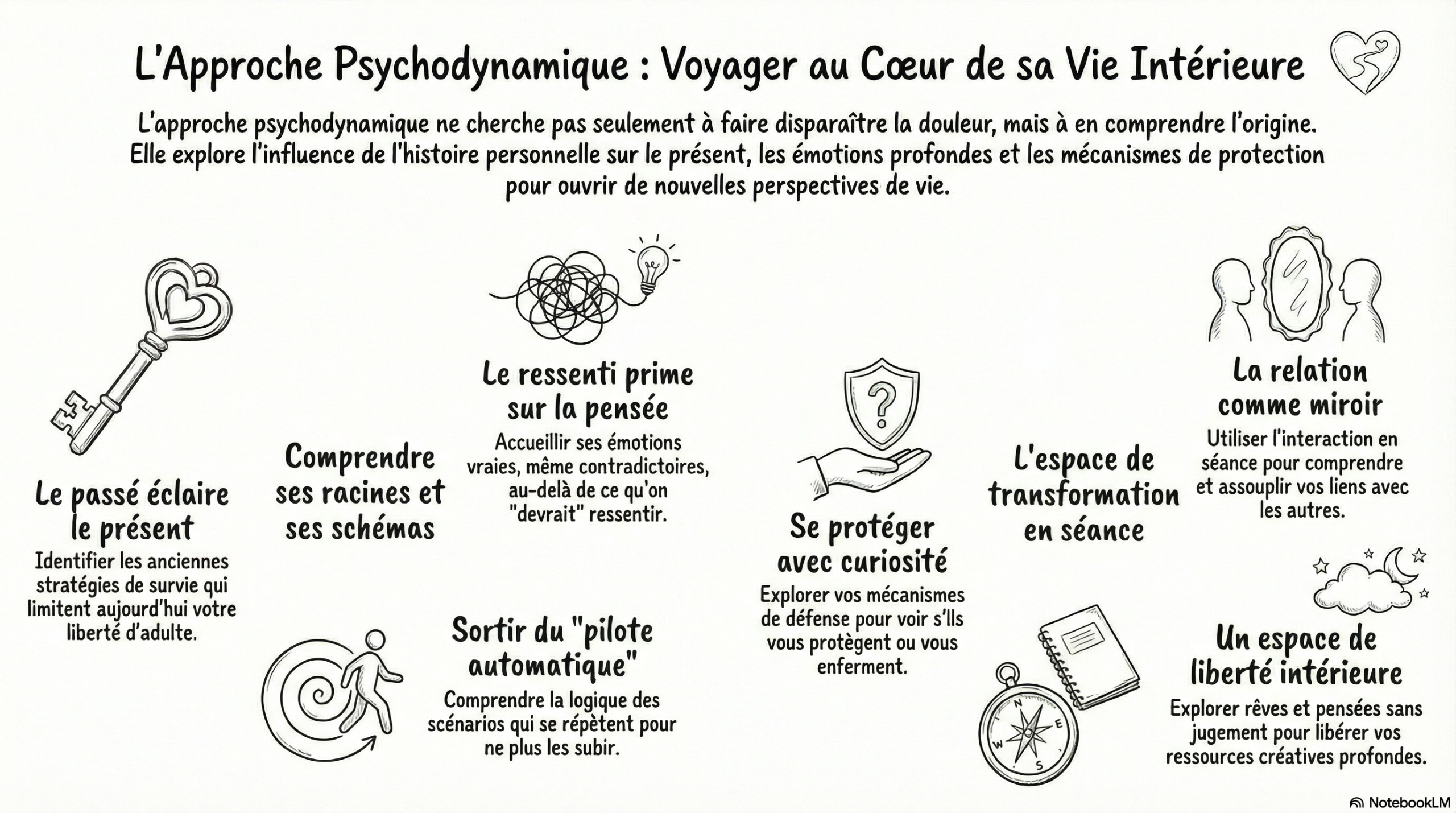 La psychothérapie psychodynamique ne cherche pas seulement à résoudre ce qui pose problème aujourd’hui, mais à comprendre pourquoi cela revient.